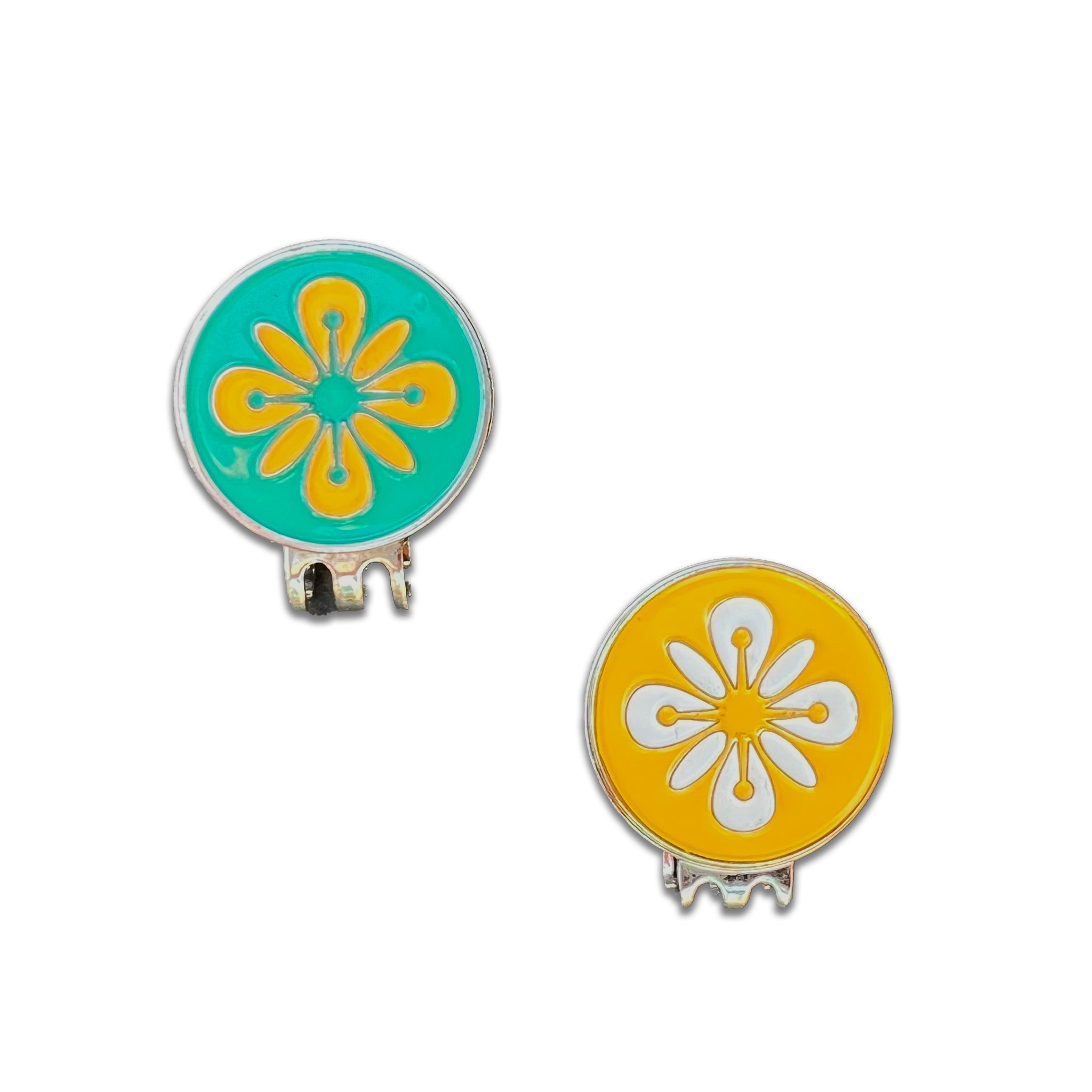 Our magnetic ball marker & clip set. The clip goes on your hat, belt etc., then just remove marker as needed and when replaced it snaps back onto the magnetic clip base.